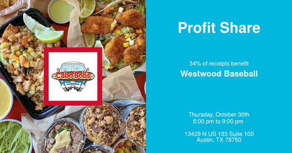 Show this flier at checkout/order pick up to give 34% of receipts to Westwood Baseball!
